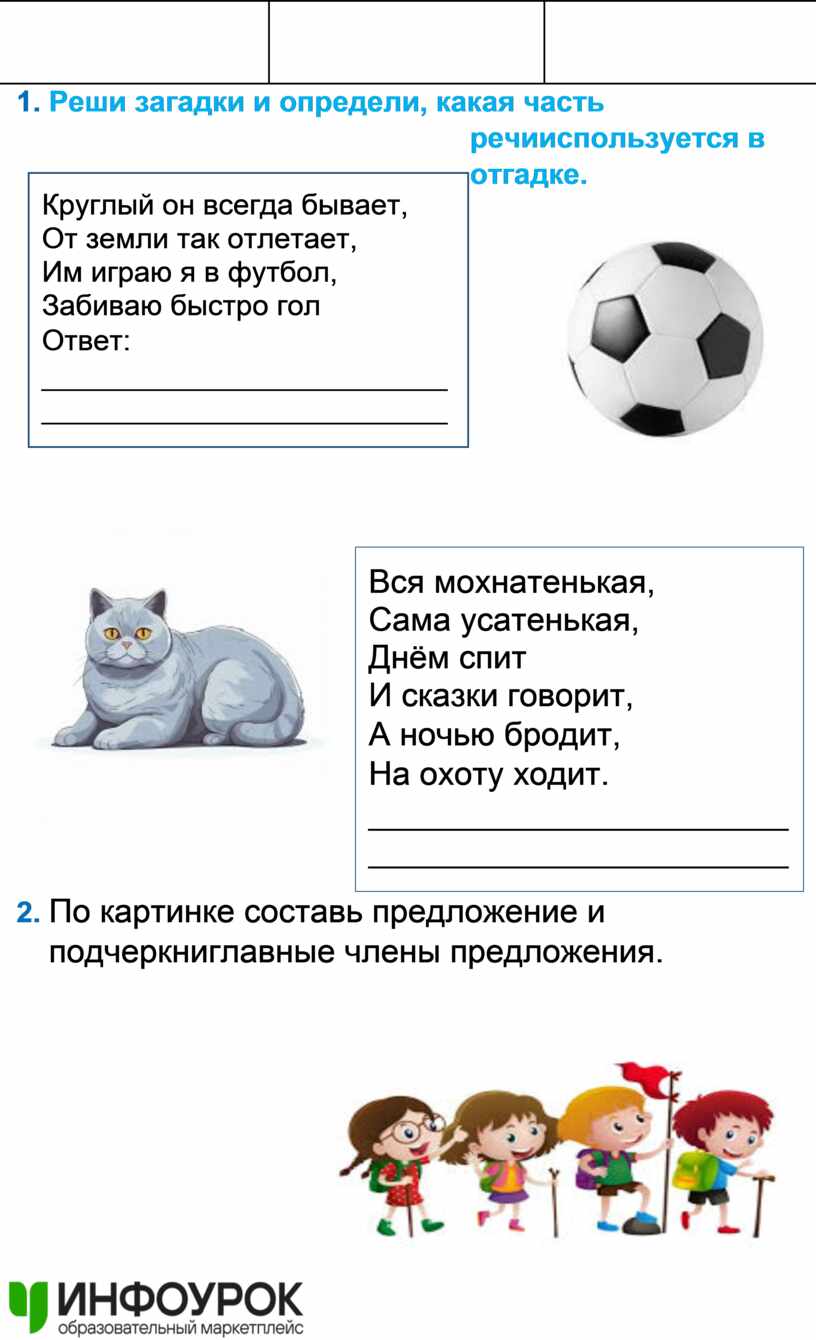 Круглый он всегда бывает, От земли так отлетает, Им играю я в футбол, Забиваю быстро гол Ответ: _________________________ _________________________  |