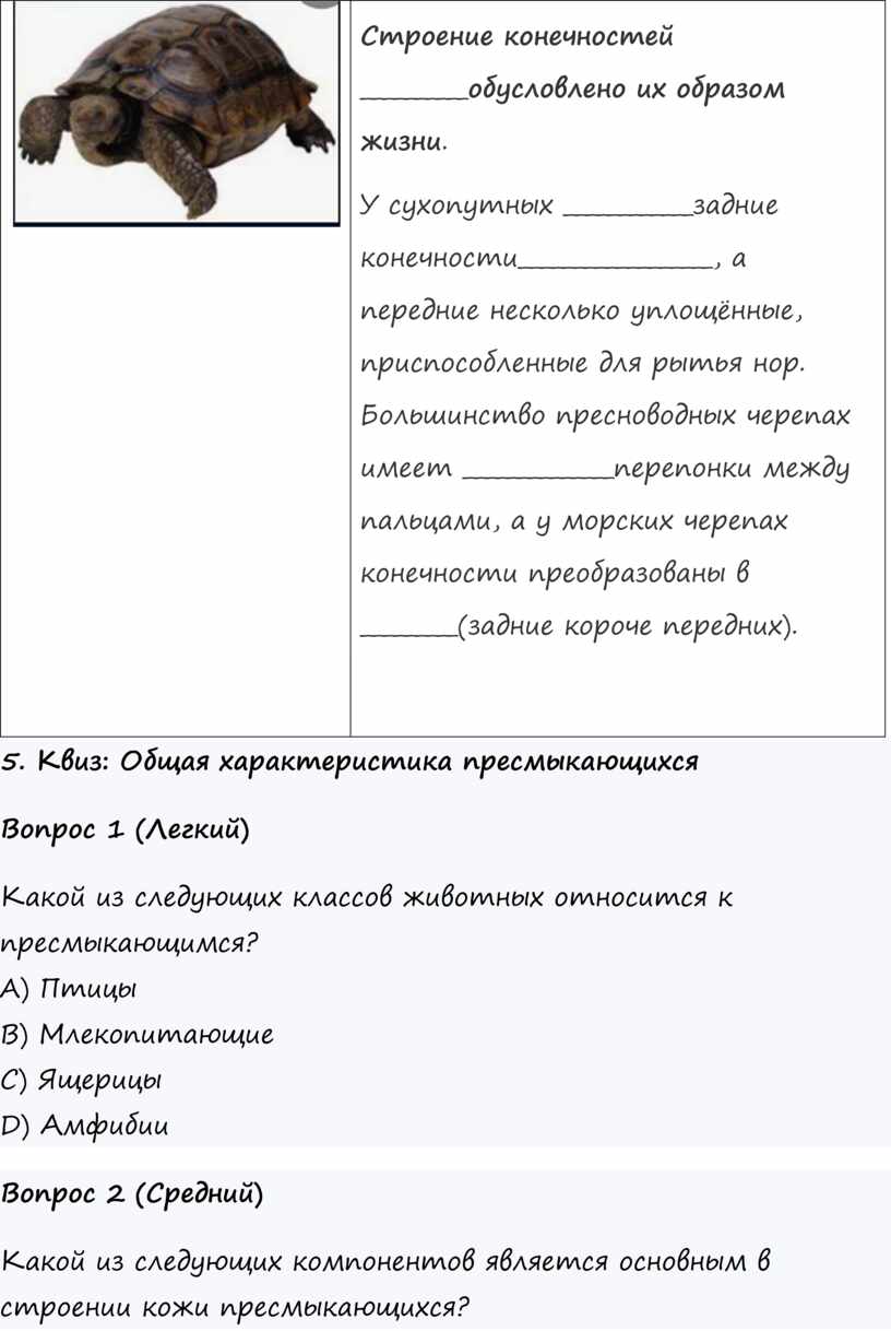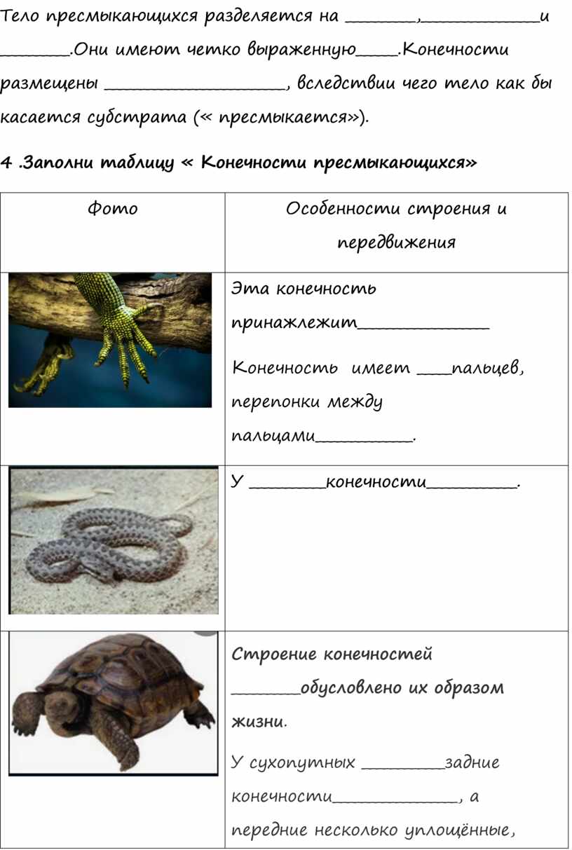 4 .Заполни таблицу « Конечности пресмыкающихся»