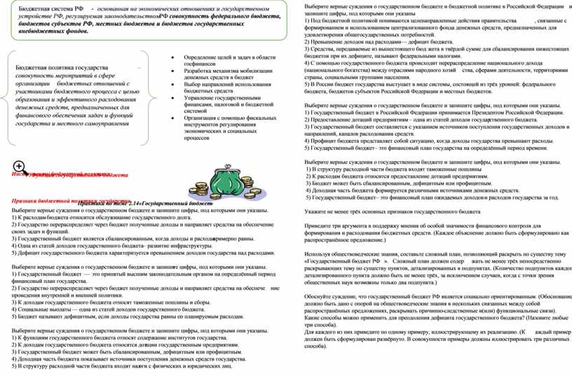 2. Выберите верные суждения о государственном бюджете и запишите цифры, под которыми они указаны.