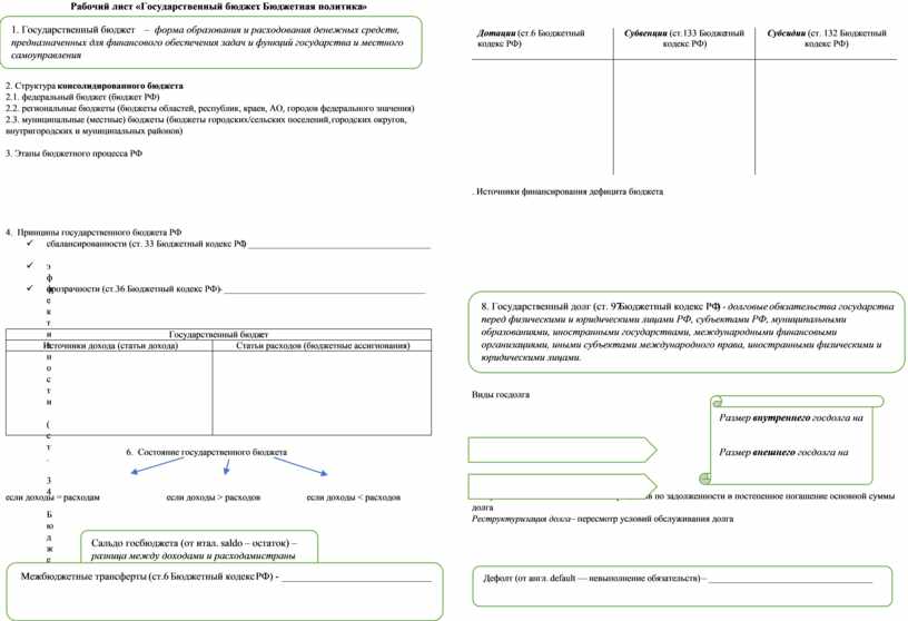 Рабочий лист «Государственный бюджет. Бюджетная политика»