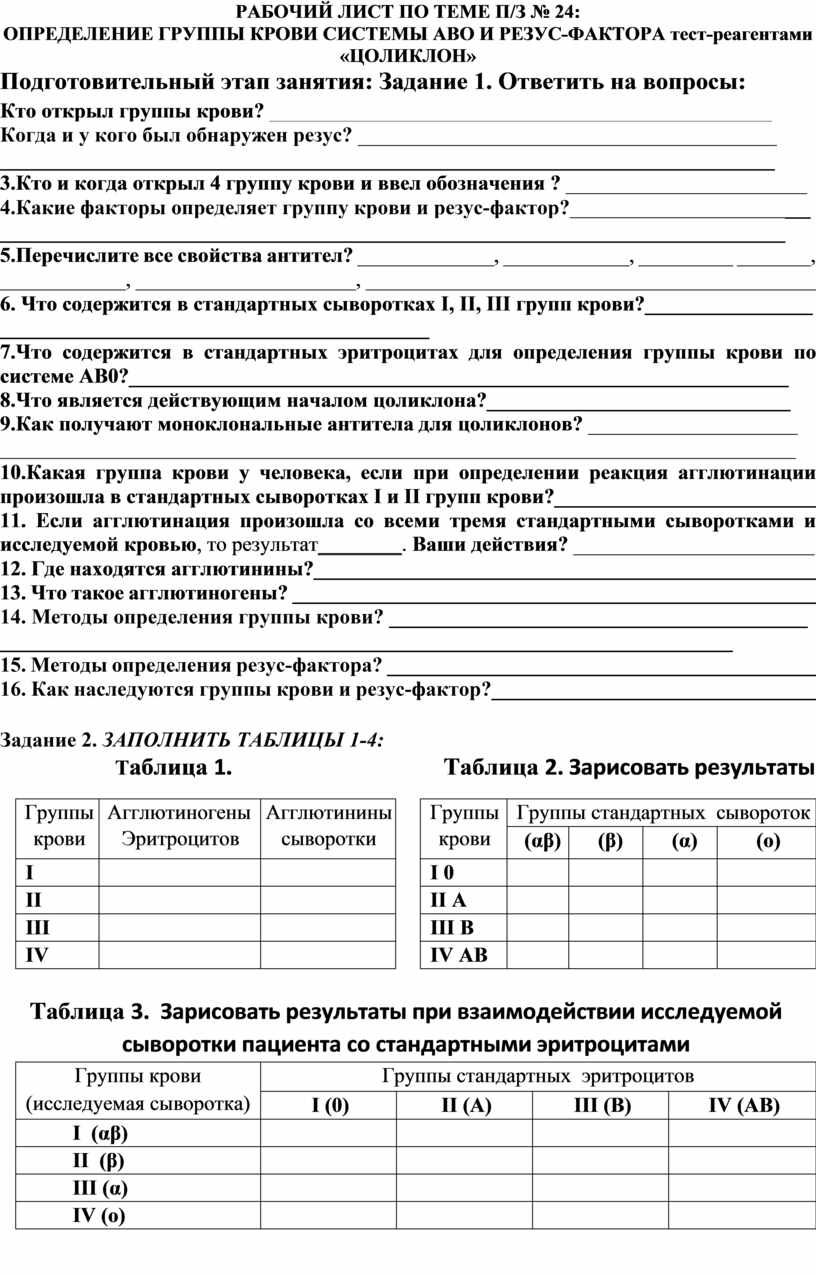 РАБОЧИЙ ЛИСТ ПО ТЕМЕ П/З № 24: