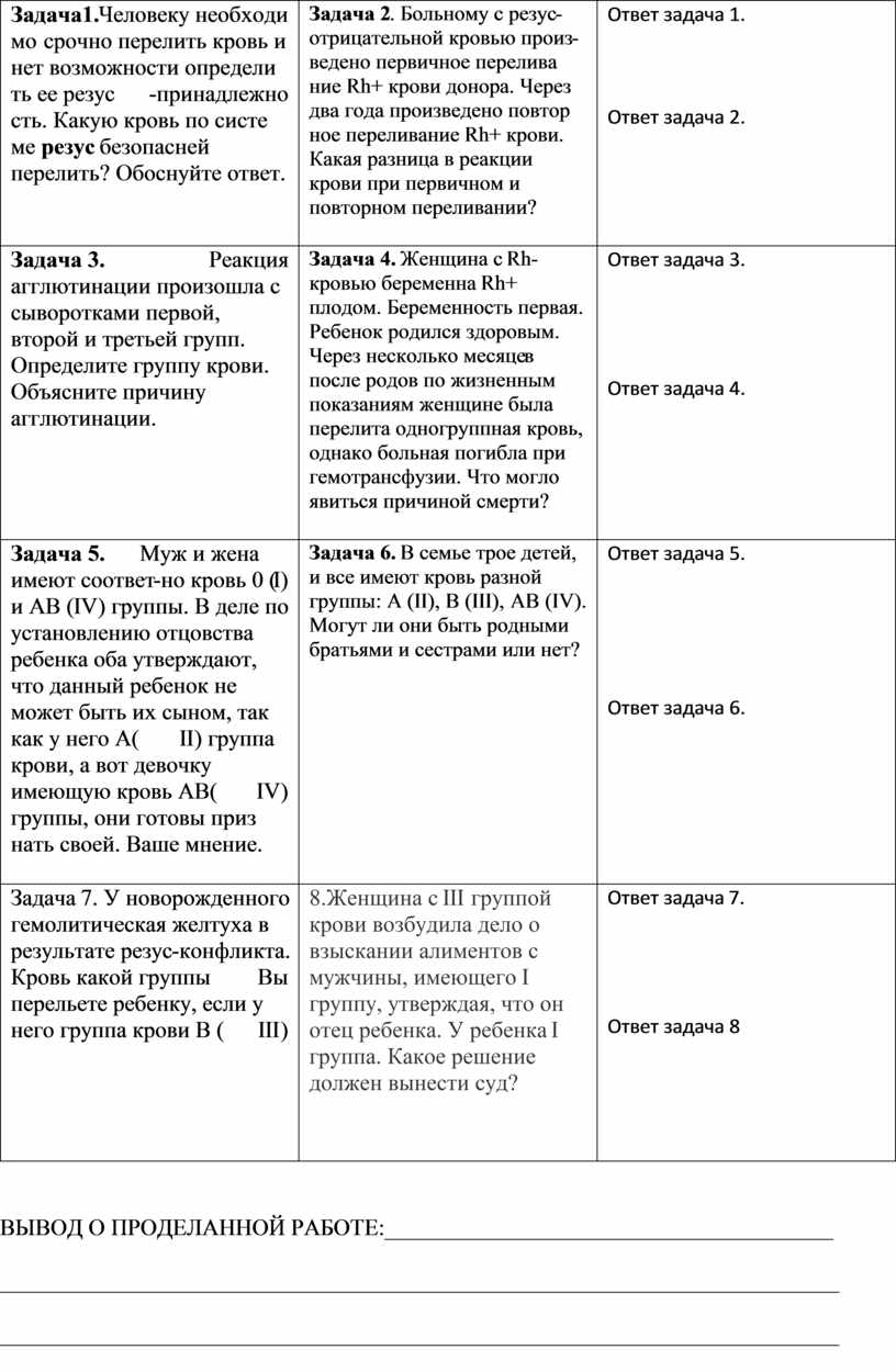 Задача1.Человеку необходи мо срочно перелить кровь и нет возможности определи ть ее резус-принадлежно сть. Какую кровь по систе ме резус безопасней перелить? Обоснуйте ответ.