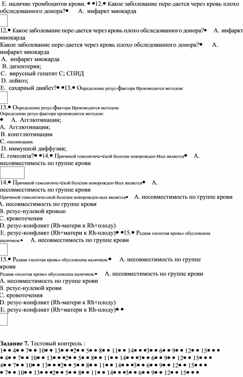 11. Если агглютинация произошла со всеми тремя стандартными сыворотками и исследуемой кровью, то результат________. Ваши действия? _______________________