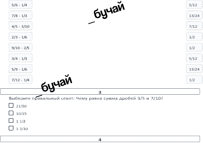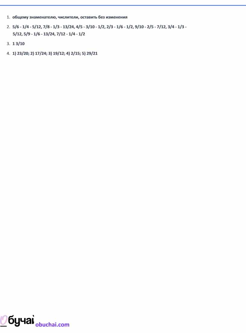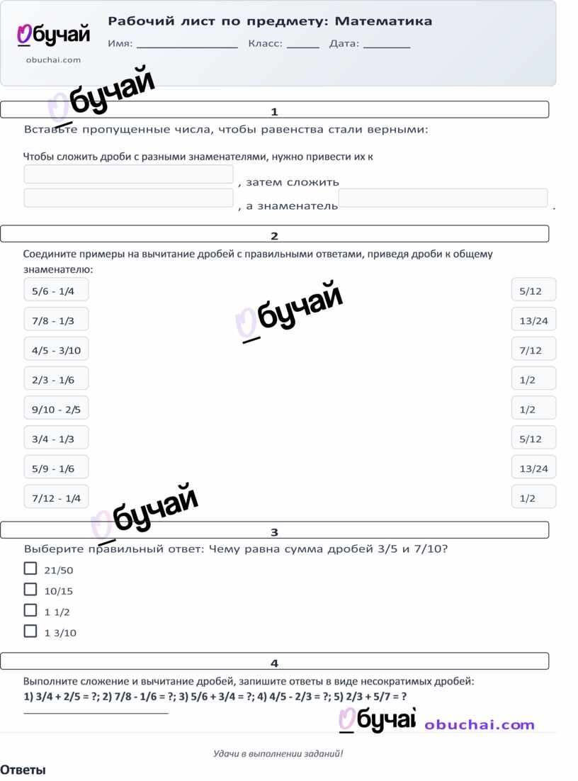 Соедините примеры на вычитание дробей с правильными ответами, приведя дроби к общему знаменателю: