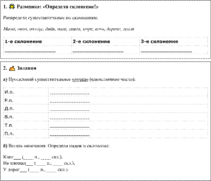 Рабочий лист: Имя существительное. Склонение (4 класс)