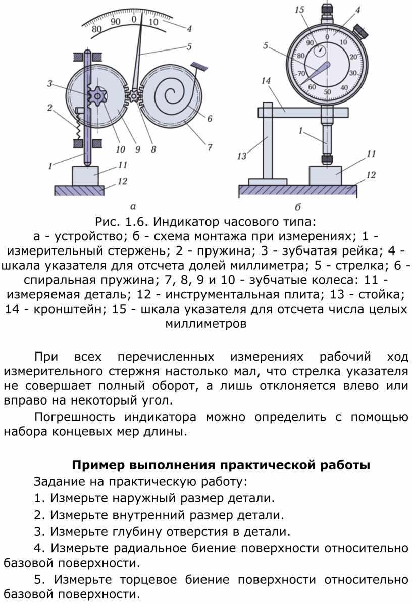 При всех перечисленных измерениях рабочий ход измерительного стержня настолько мал, что стрелка указателя не совершает полный оборот, а лишь отклоняется влево или вправо на некоторый угол.