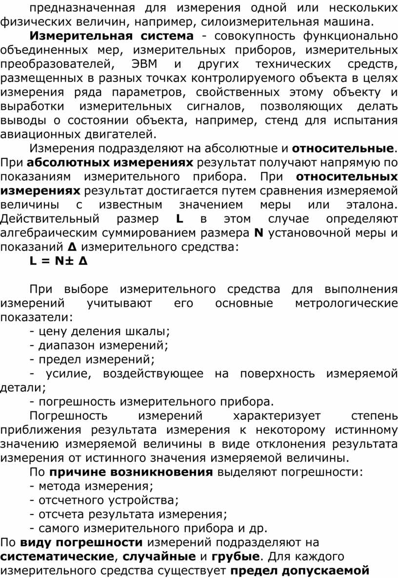 По виду погрешности измерений подразделяют на систематические, случайные и грубые. Для каждого измерительного средства существует предел допускаемой погрешности, под которым понимают наибольшую абсолютную погрешность средства измерения, при которой это измерительное средство еще может быть признано годным к применению.