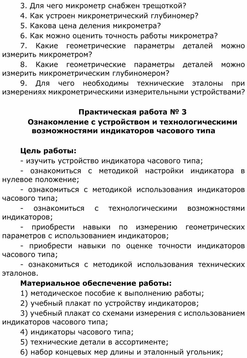 - приобрести навыки по измерению геометрических параметров с использованием индикаторов;