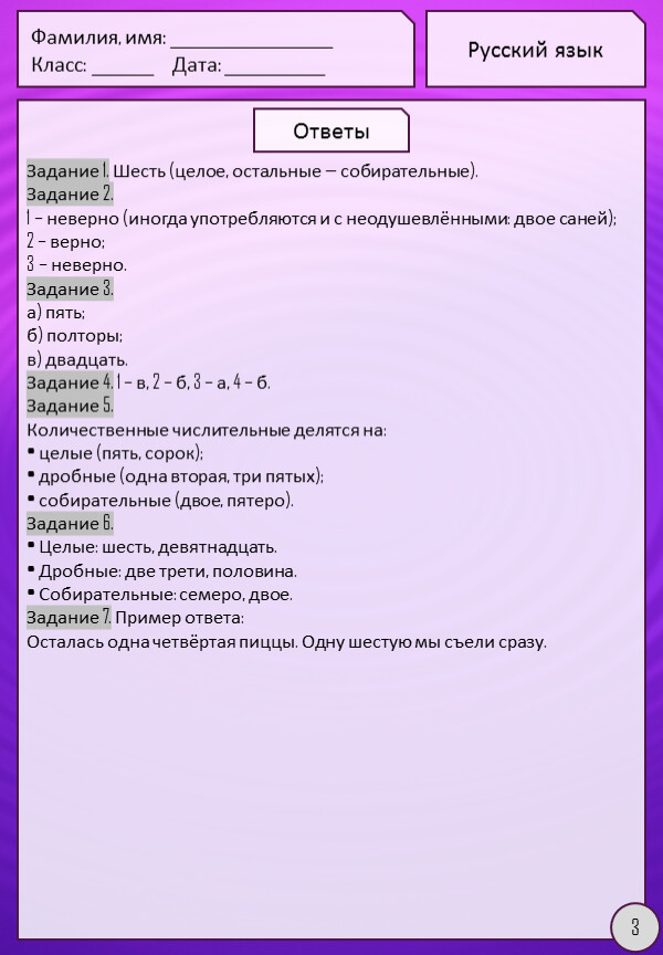 Задание 5. Объясни, на какие разряды делятся количественные числительные по значению. Приведи по два примера каждого разряда: ________________________________________________________________________________________________________________________________________________________________________________________________________________________________________________________________________________