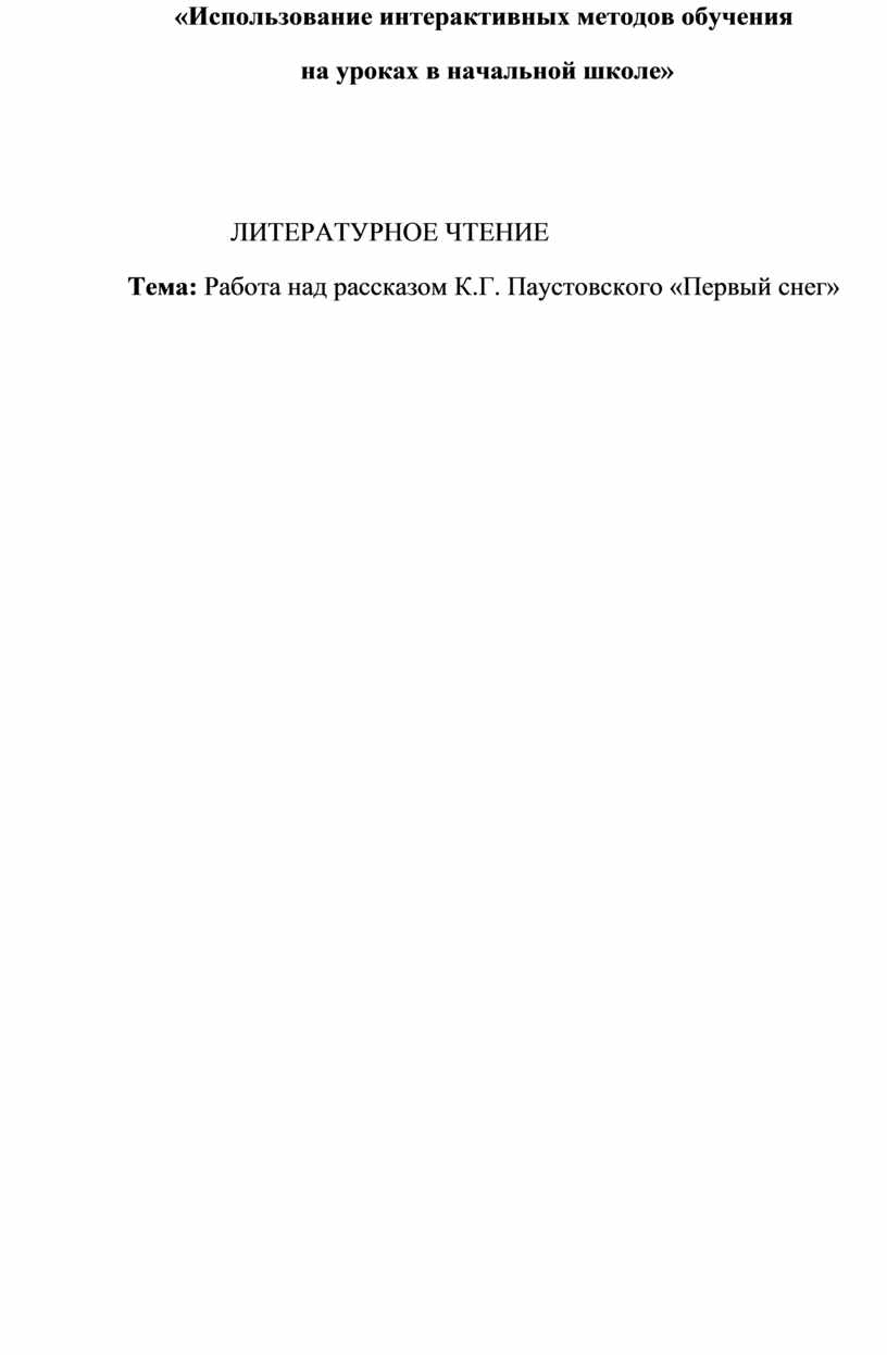 Тема: Работа над рассказом К.Г. Паустовского «Первый снег»
