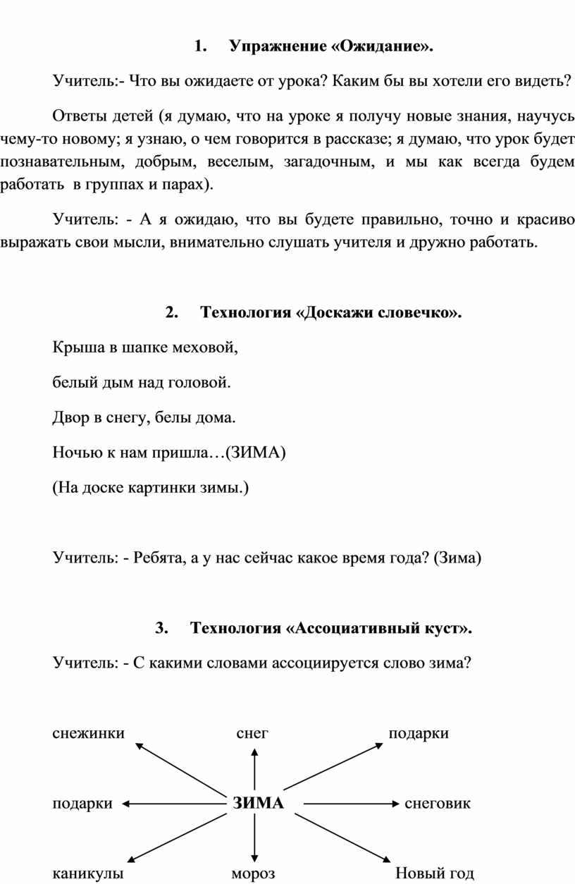 Учитель: - С какими словами ассоциируется слово зима?