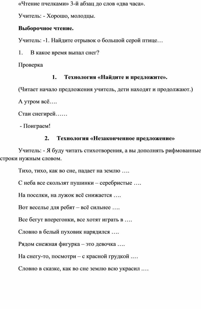 «Чтение пчелками» 3-й абзац до слов «два часа».
