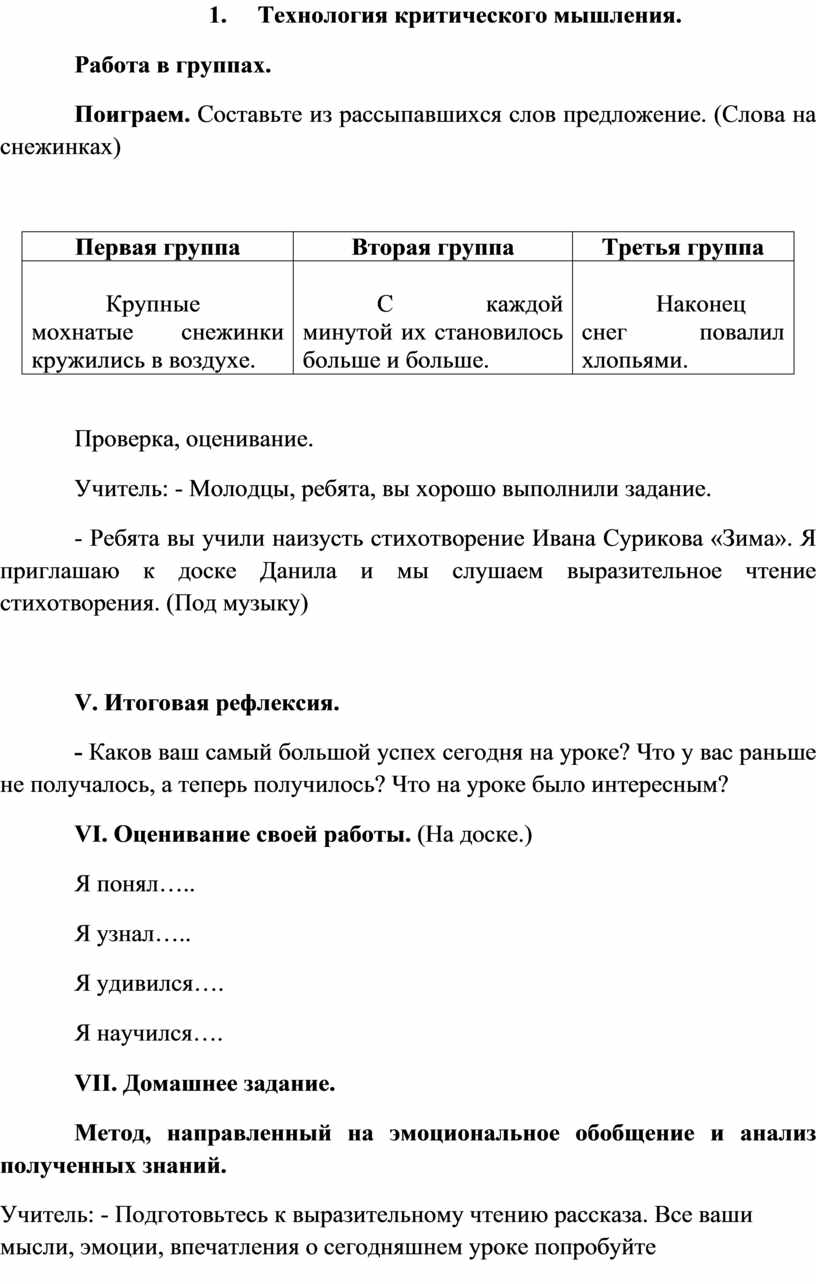 V. Итоговая рефлексия.