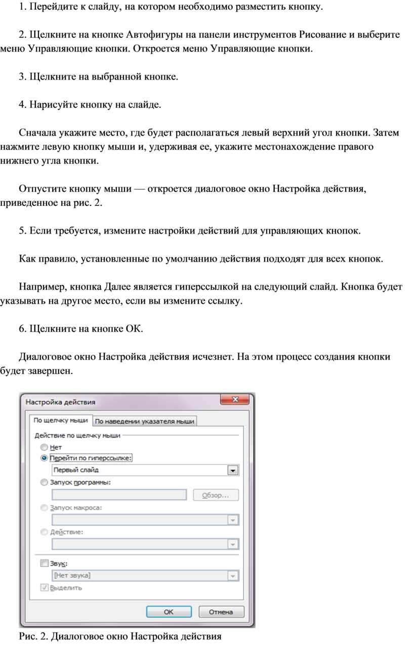 Отпустите кнопку мыши — откроется диалоговое окно Настройка действия, приведенное на рис. 2.