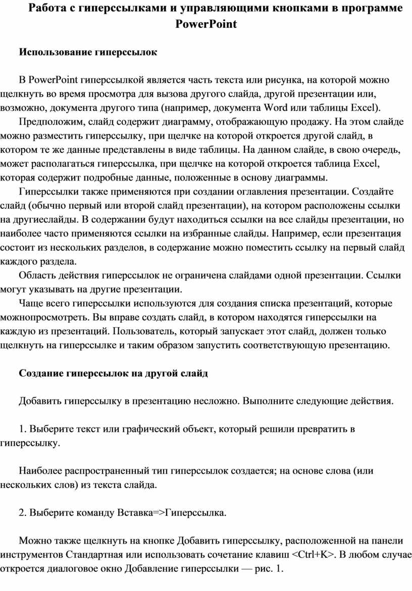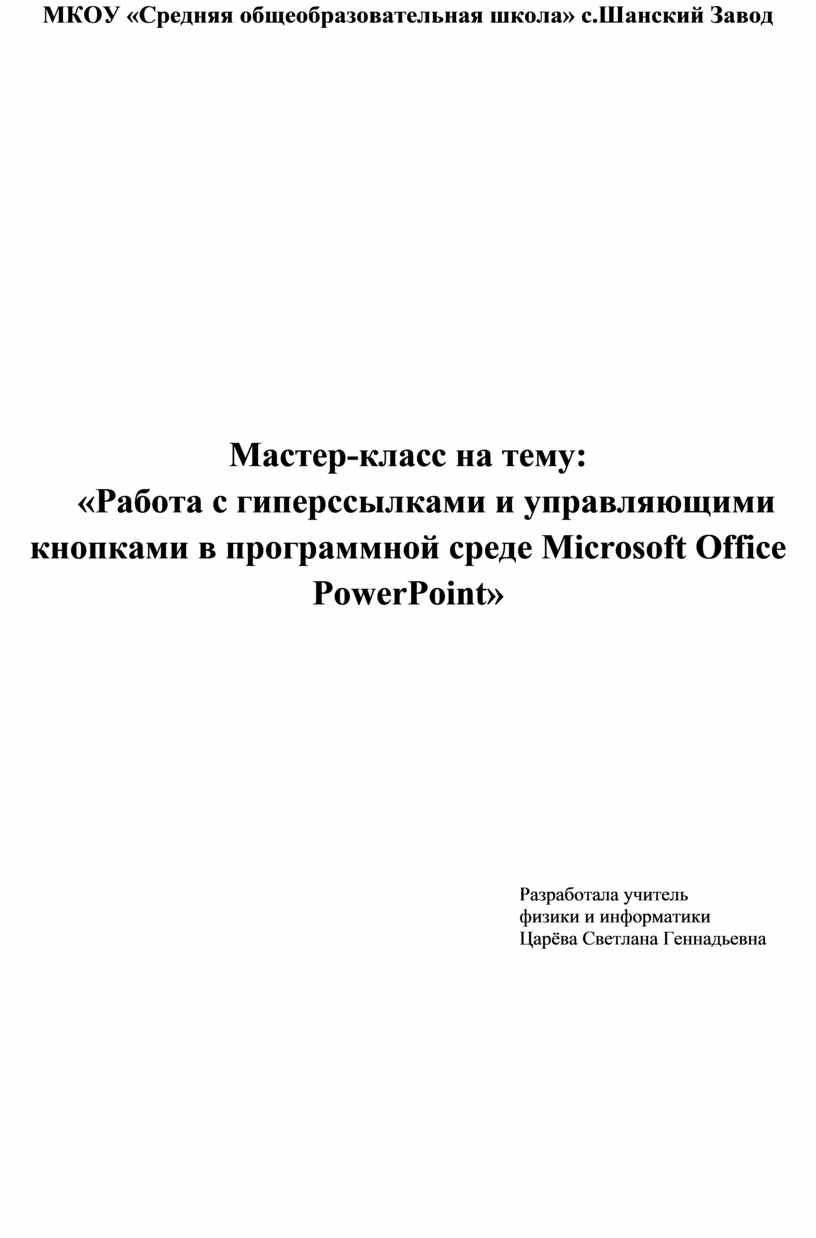 «Работа с гиперссылками и управляющими кнопками в программной среде Microsoft Office PowerPoint»