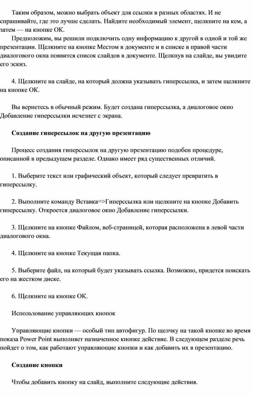 Наиболее распространенный тип гиперссылок создается; на основе слова (или нескольких слов) из текста слайда.