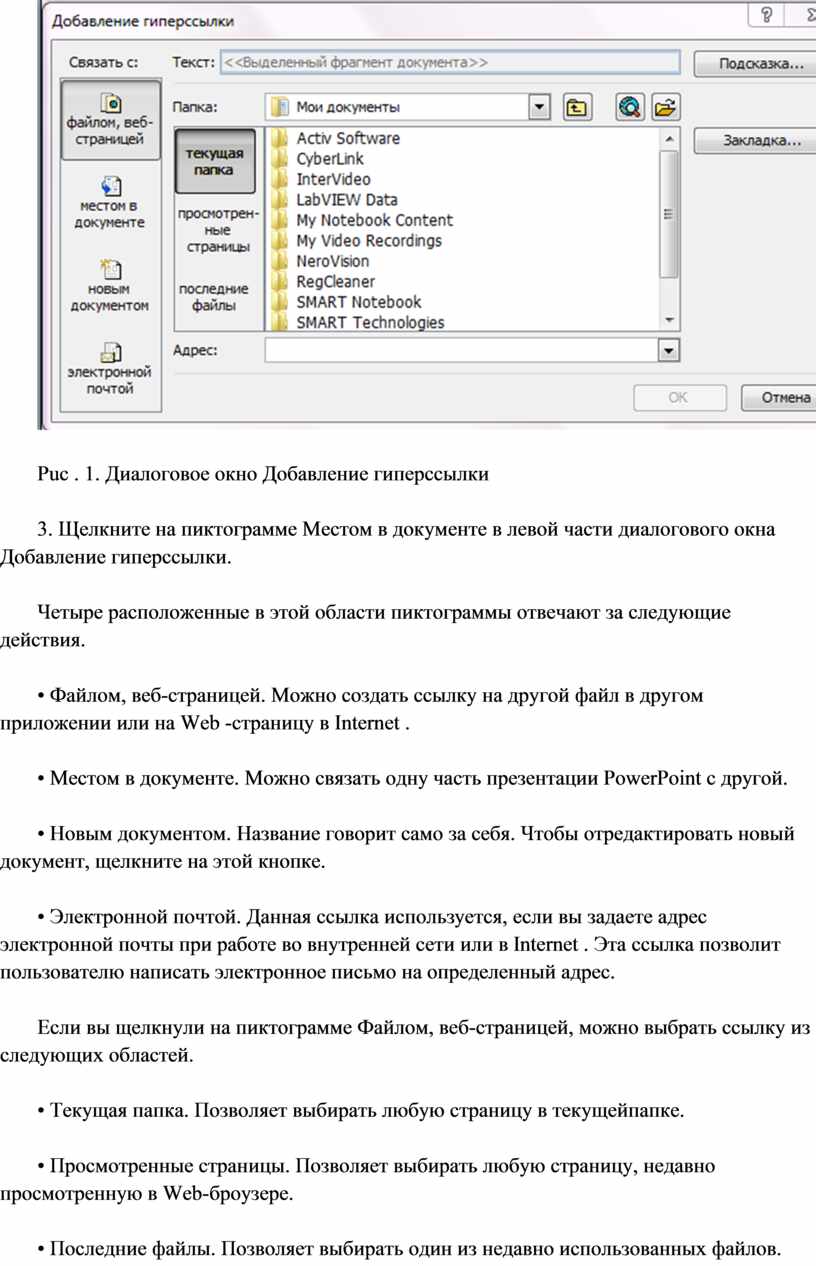 Puc . 1. Диалоговое окно Добавление гиперссылки