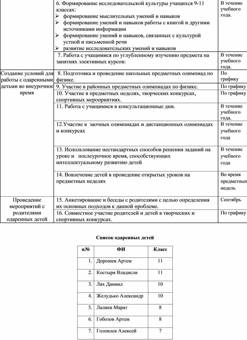 Список одаренных детей