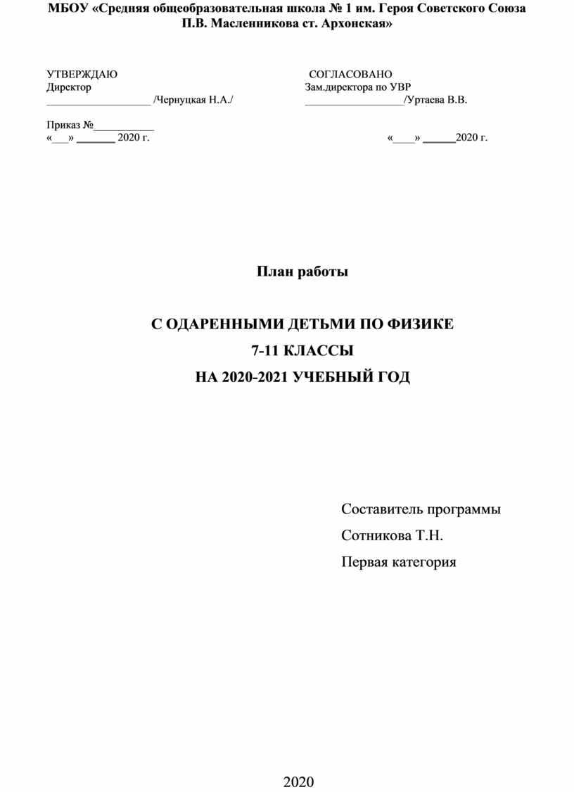 НА 2020-2021 УЧЕБНЫЙ ГОД