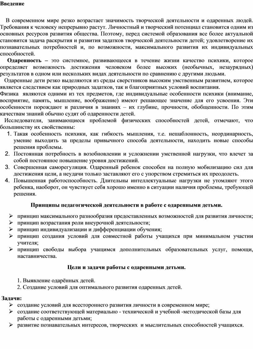 Принципы педагогической деятельности в работе с одаренными детьми.
