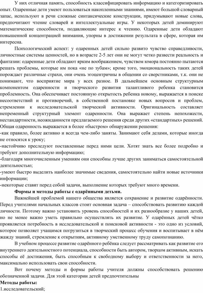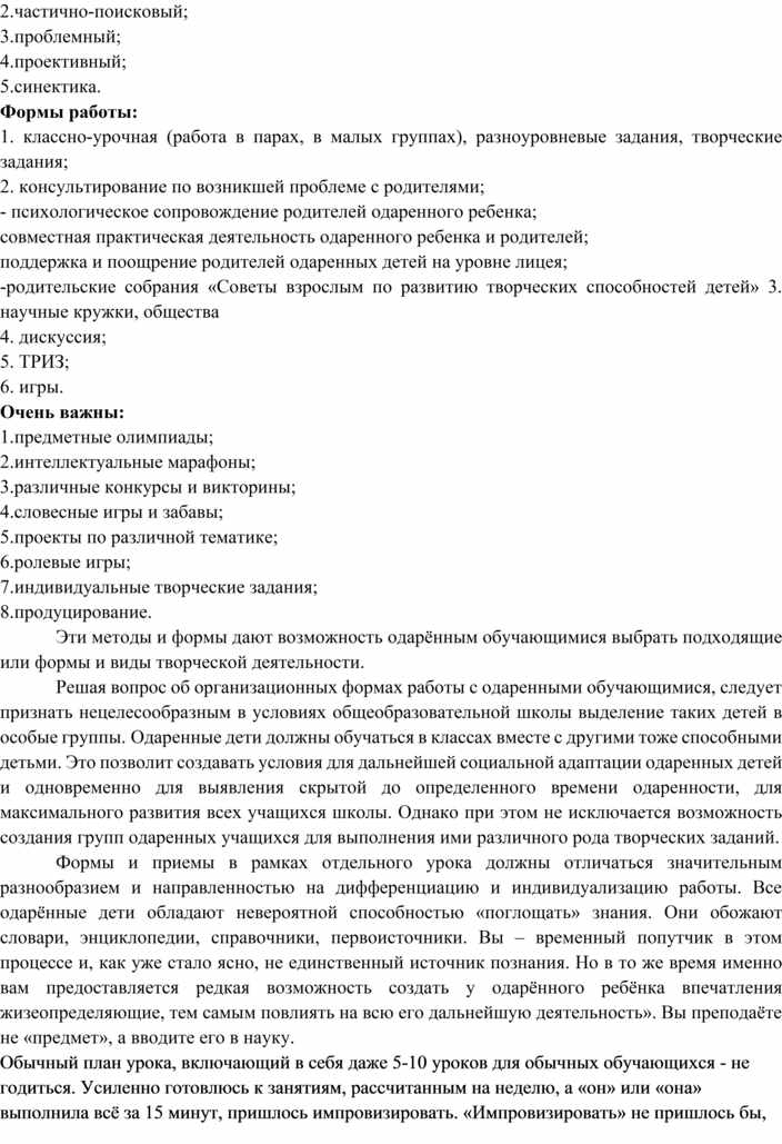 Эти методы и формы дают возможность одарённым обучающимися выбрать подходящие или формы и виды творческой деятельности.