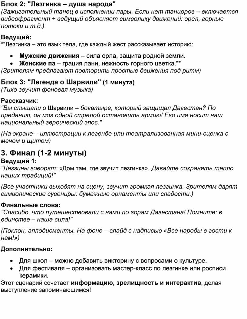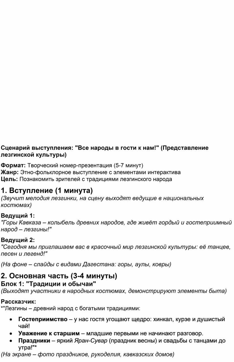 Сценарий выступления: "Все народы в гости к нам!" (Представление лезгинской культуры)