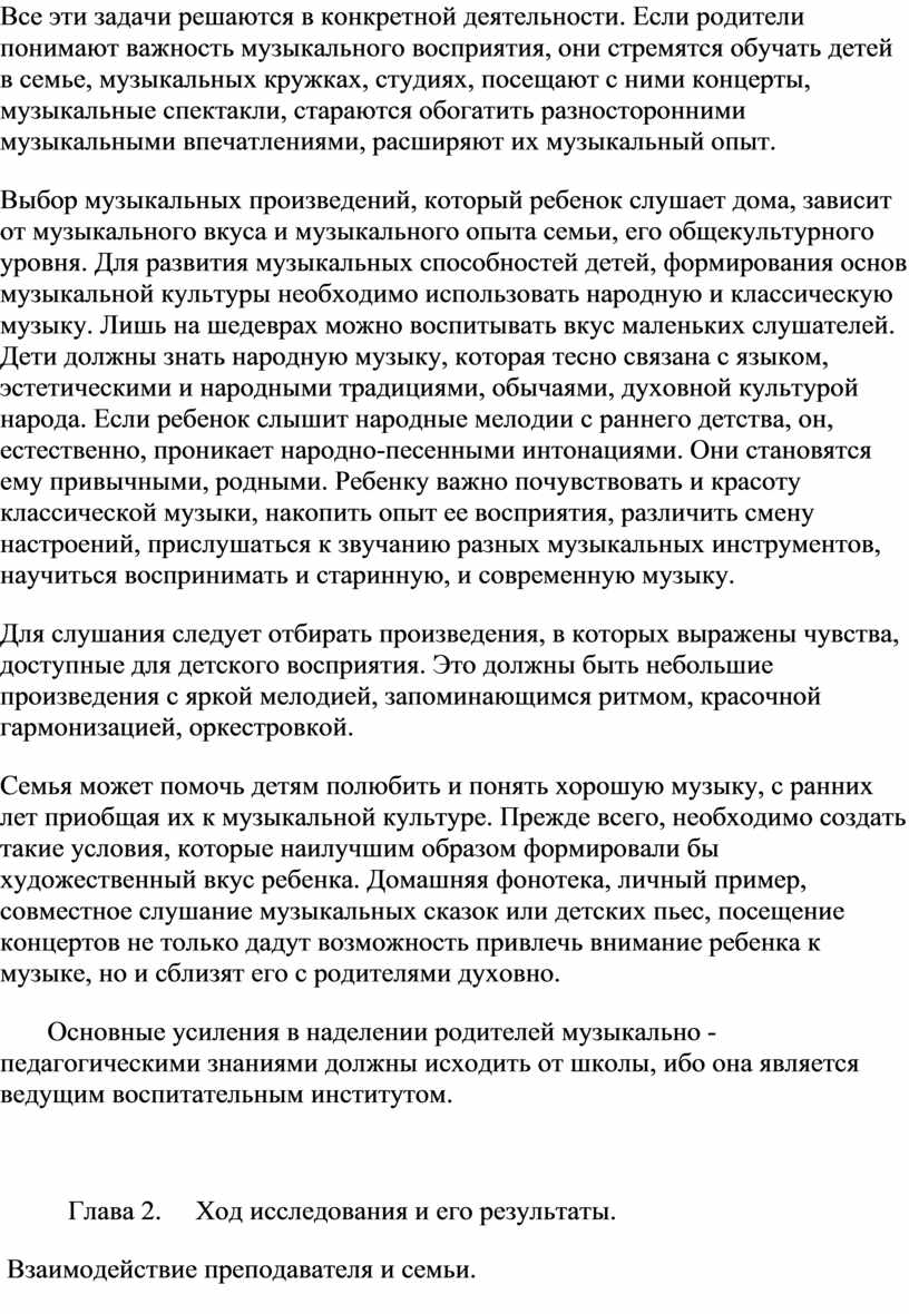 Все эти задачи решаются в конкретной деятельности. Если родители понимают важность музыкального восприятия, они стремятся обучать детей в семье, музыкальных кружках, студиях, посещают с ними концерты, музыкальные спектакли, стараются обогатить разносторонними музыкальными впечатлениями, расширяют их музыкальный опыт.