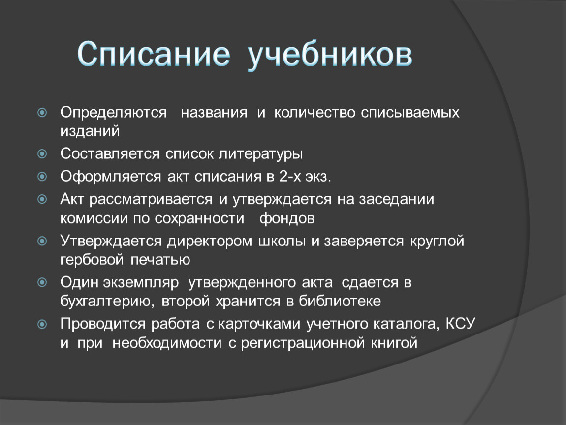 Списание учебников