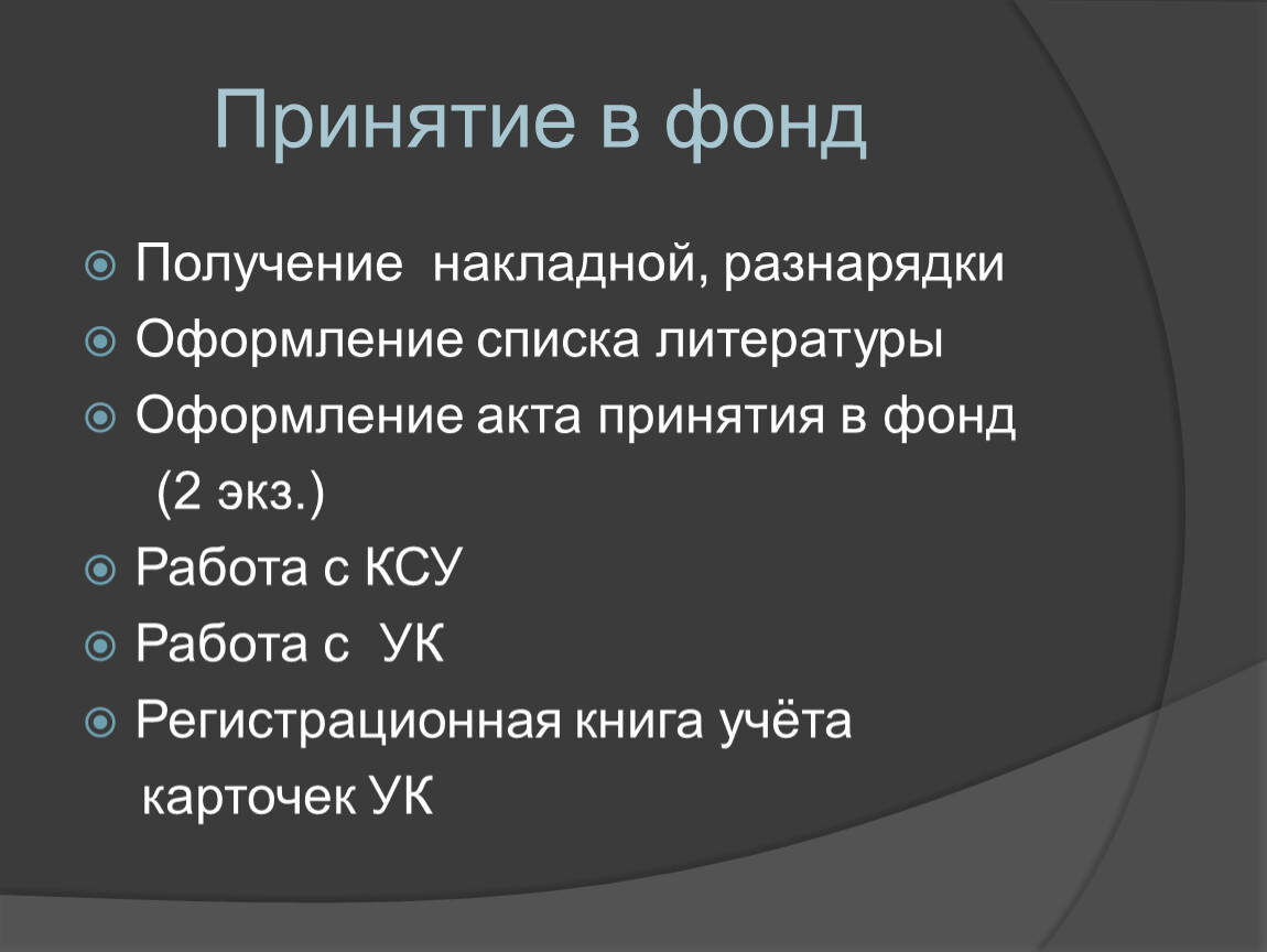 Оформление акта принятия в фонд