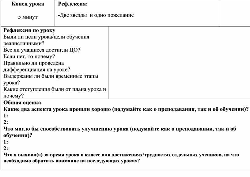 Что могло бы способствовать улучшению урока (подумайте как о преподавании, так и об обучении)?