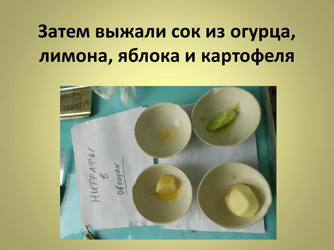 При этом в яблоке, лимоне, огурце и картофеле количество нитратов было невелико (менее 50мг) и не может оказать отрицательного влияния на здоровье