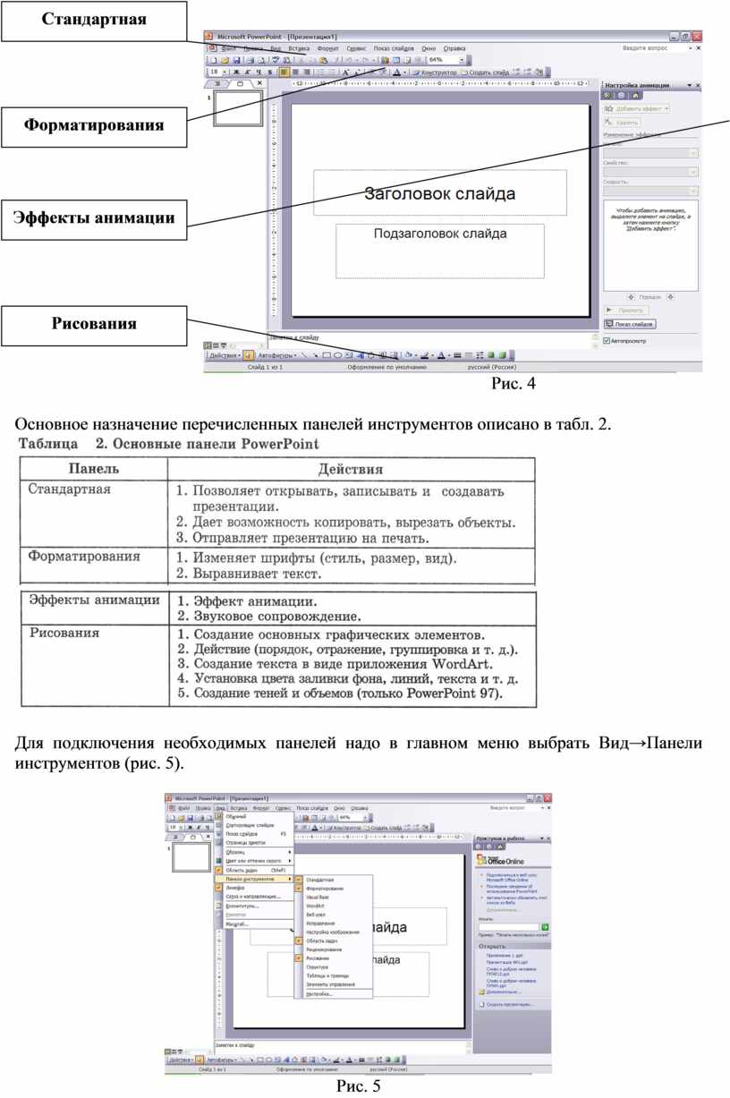 Для подключения необходимых панелей надо в главном меню выбрать Вид→Панели инструментов (рис. 5).