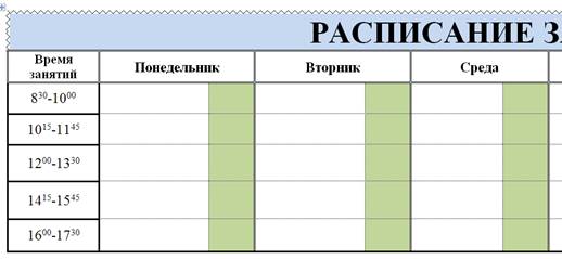 При оформлении документа удобнее использовать таблицу с настроенными границами (пунктиром показаны невидимые линии).