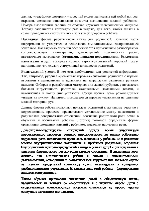 Работа логопеда с родителями детей с ОВЗ