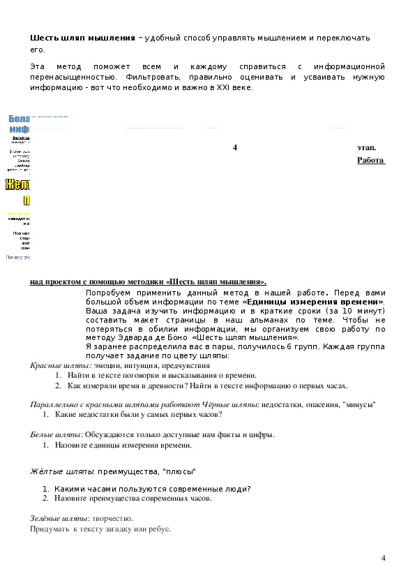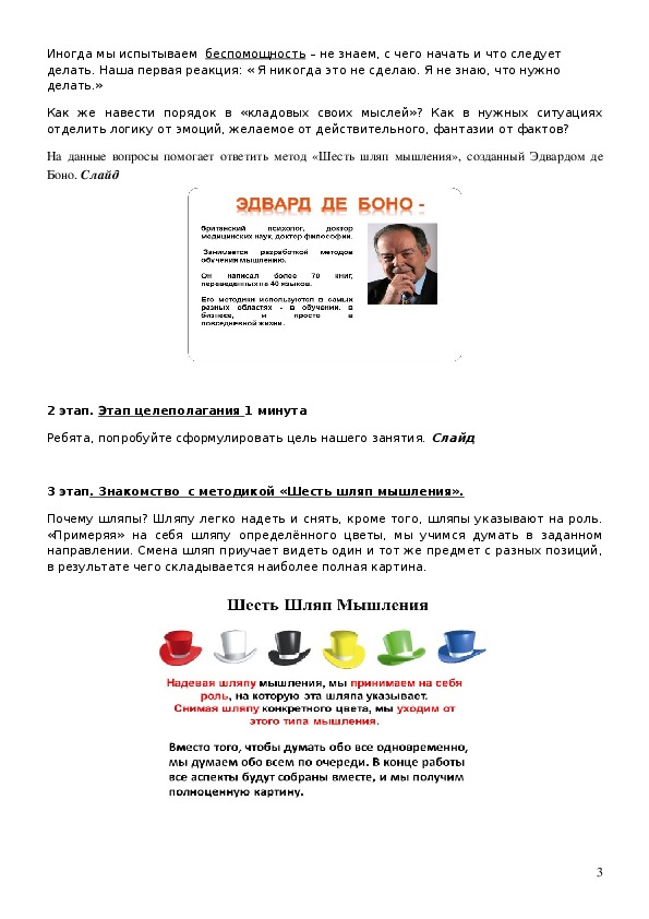 3 этап. Знакомство с методикой «Шесть шляп мышления».