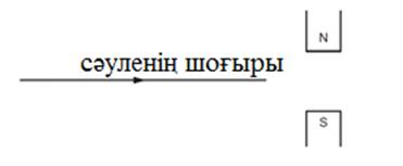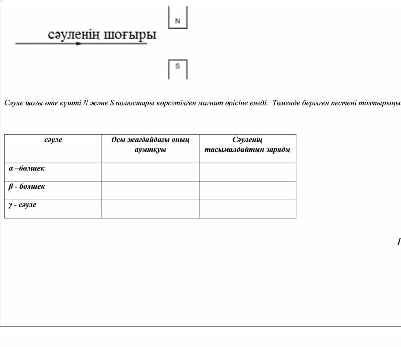 Сәуле шоғы өте күшті N және S полюстары көрсетілген магнит өрісіне енеді. Төменде берілген кестені толтырыңыз.