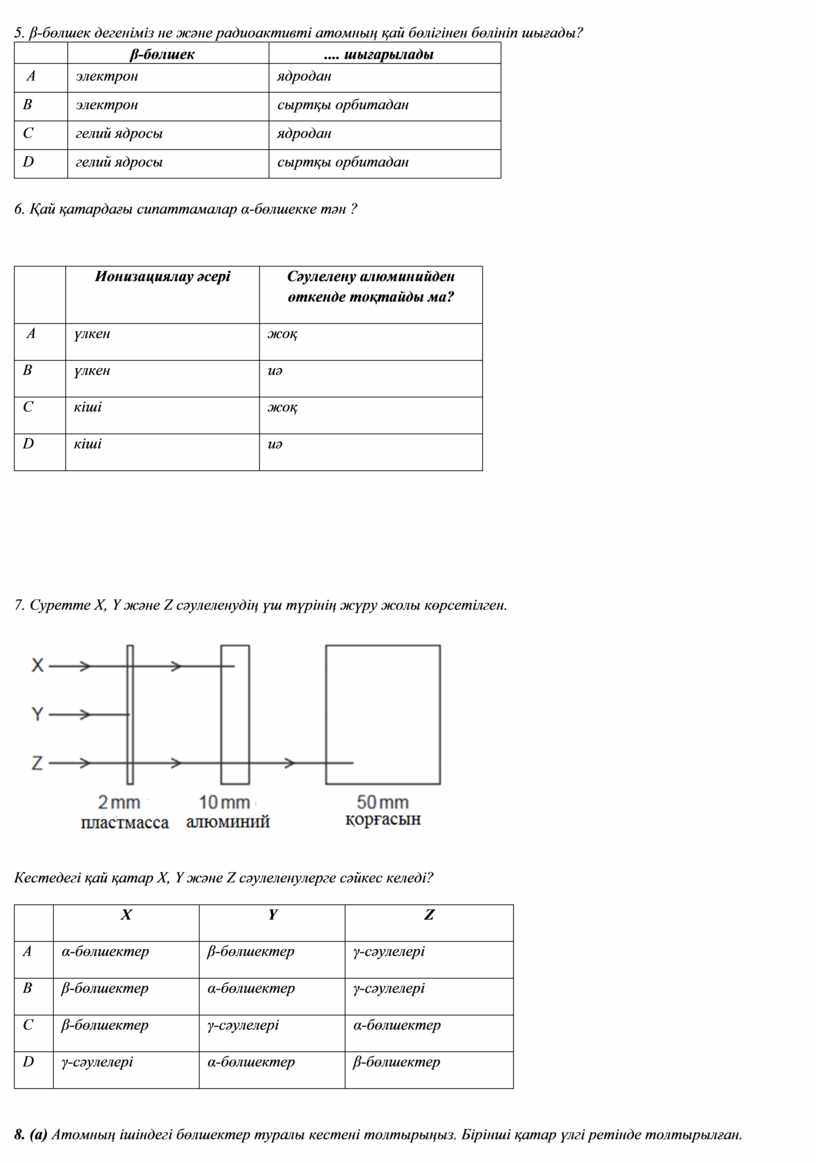 7. Суретте Х, Y және Z сәулеленудің үш түрінің жүру жолы көрсетілген.