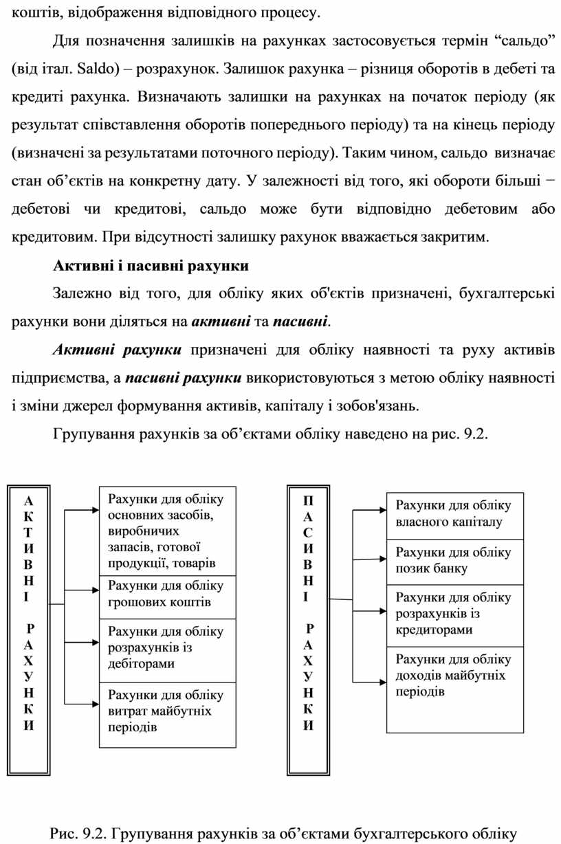 рахунків за об’єктами обліку наведено на рис. 9.2.