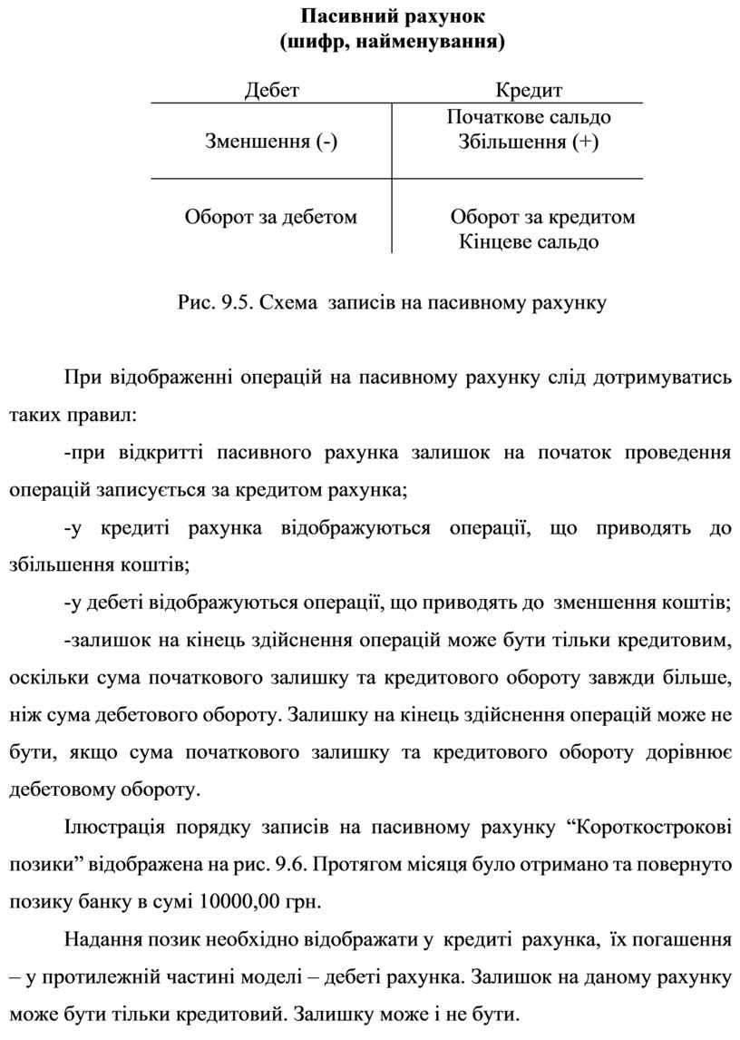 Схема записів на пасивному рахунку відображена на рис. 9.5.