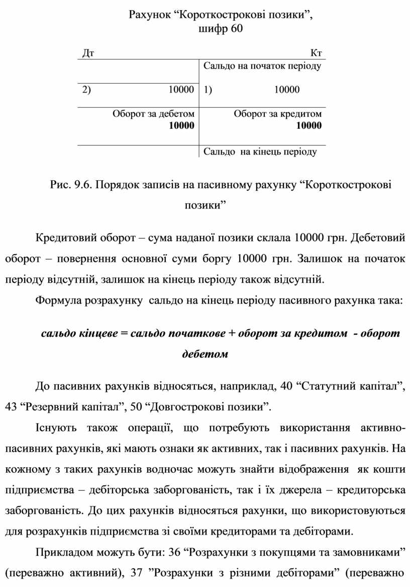 Ілюстрація порядку записів на пасивному рахунку “Короткострокові позики” відображена на рис. 9.6. Протягом місяця було отримано та повернуто позику банку в сумі 10000,00 грн.