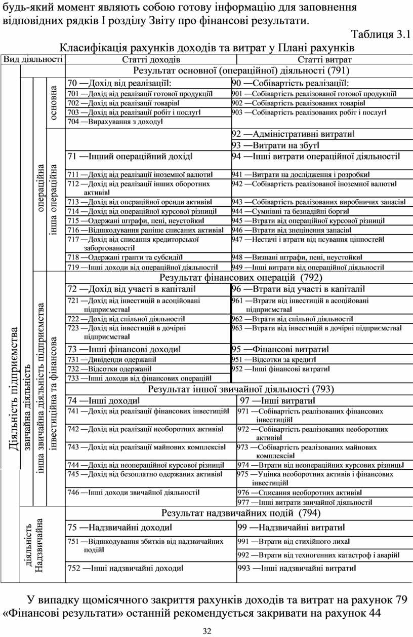 Таблиця 3.1 Класифікація рахунків доходів та витрат у Плані рахунків