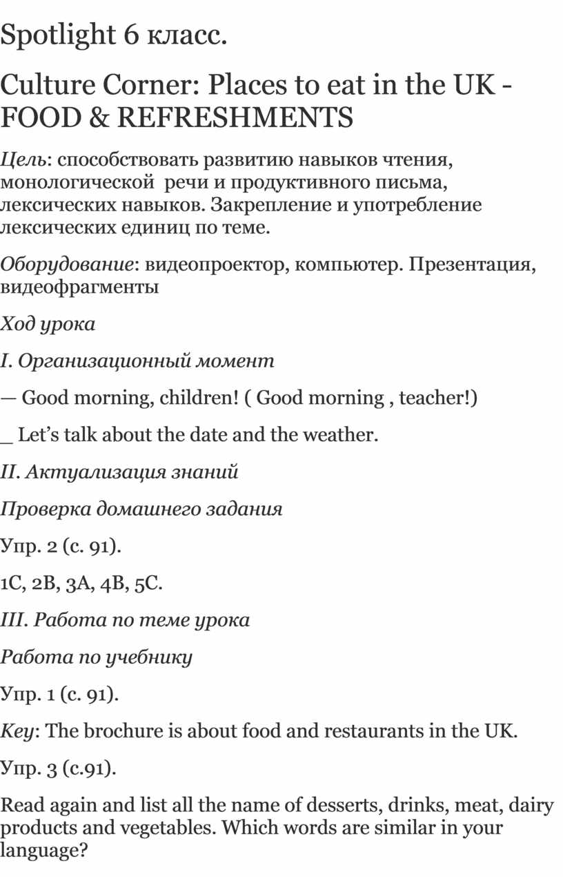 Culture Corner: Places to eat in the UK - FOOD & REFRESHMENTS