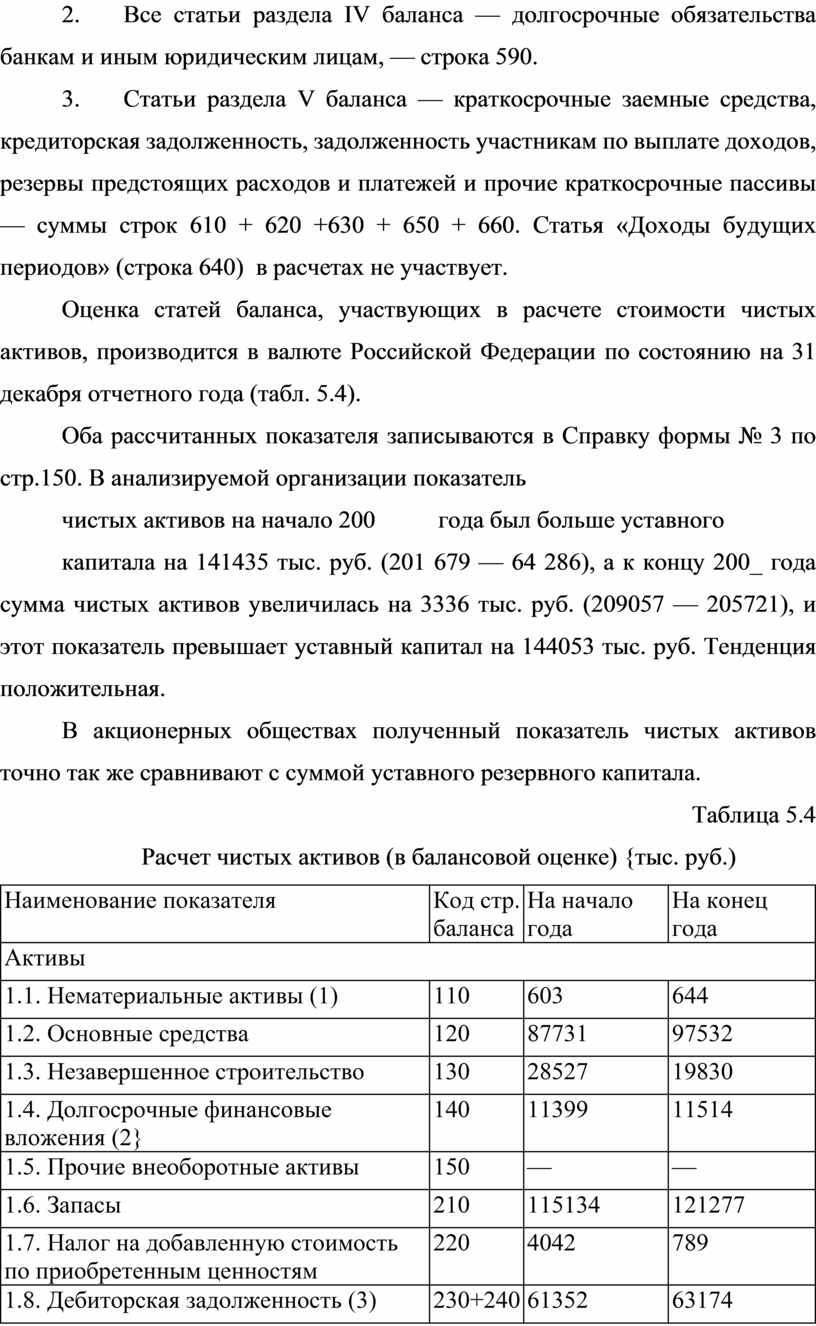 Оценка статей баланса, участвующих в расчете стоимости чистых активов, производится в валюте Российской Федерации по состоянию на 31 декабря отчетного года (табл. 5.4).