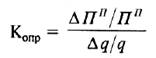 Коэффициент операционного рычага (Копр) представляет собой частное от деления относительного изменения прибыли от продажи (Пп) на относительное изменение объема продаж (q).