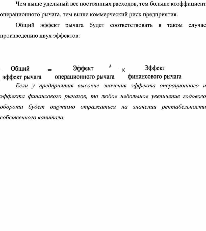 Если у предприятия высокие значения эффекта операционного и эффекта финансового рычагов, то любое небольшое увеличение годового оборота будет ощутимо отражаться на значении рентабельности собственного капитала.