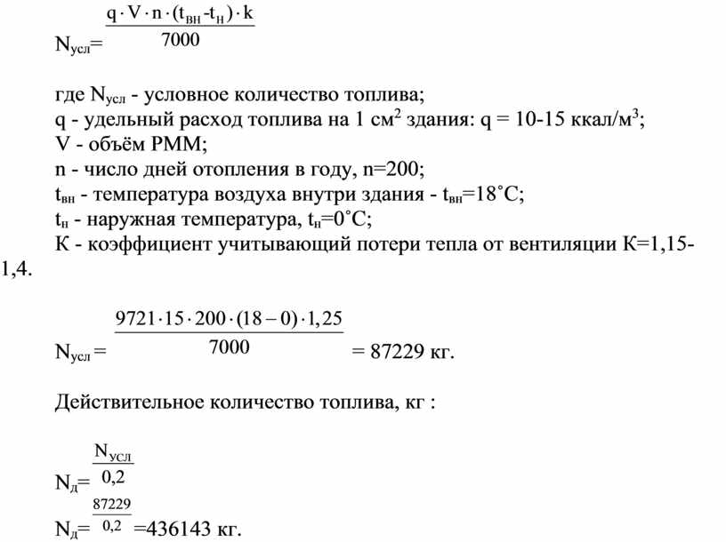Определим количество условного топлива, необходимого для отопления РММ в течение года, кг: