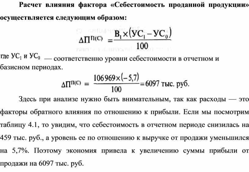 Расчет влияния фактора «Себестоимость проданной продукции» осуществляется следующим образом: