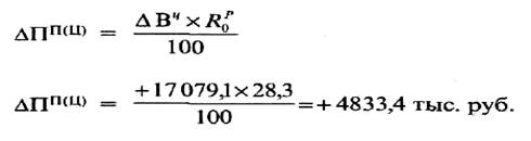 Таким образом, прирост цен на продукцию в отчетном периоде по сравнению с прошедшим периодом в среднем на 19% привел к увеличению суммы прибыли от продажи на 4833,4 тыс. руб.
