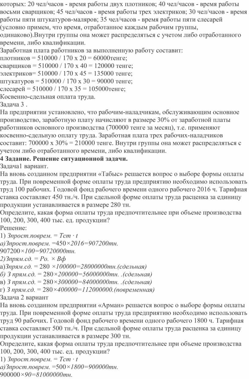 На вновь созданном предприятии «Арман» решается вопрос о выборе формы оплаты труда. При повременной форме оплаты труда предприятию необходимо использовать труд 90 рабочих. Годовой фонд рабочего времени одного рабочего 1800 ч. Тарифная ставка составляет 500 тн./ч. При сдельной форме оплаты труда расценка за единицу продукции устанавливается в размере 300 тн.