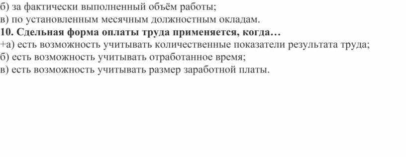 + а) форма распределения основной части продукта внутри предприятия в соответствии с количеством и качеством затраченного труда;